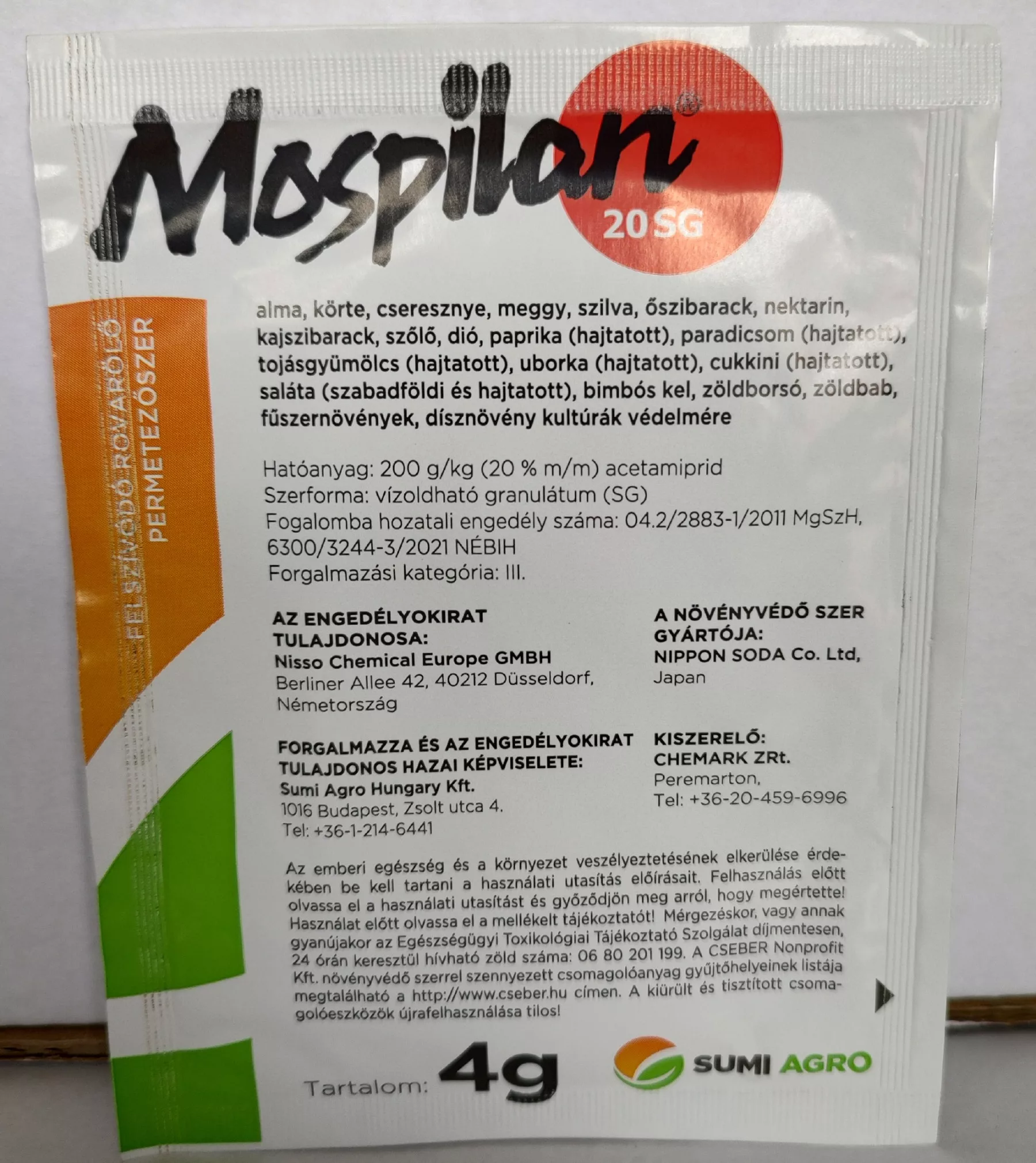 Hatóanyag: 200 g/kg (20 % m/m) acetamiprid, vízoldható granulátum (SG)